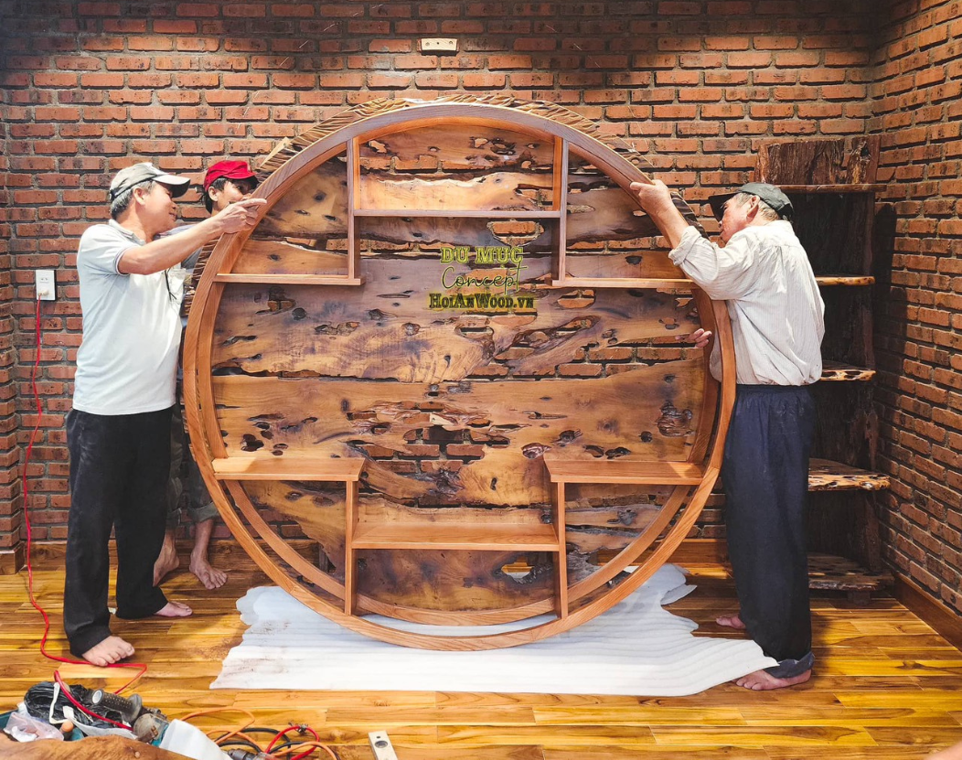 Kệ gỗ lũa áp tường trụ Mắt Cửa