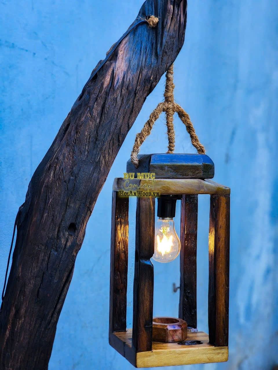 Đèn gỗ làm từ gỗ lũa, gỗ Reclaimed bền bỉ, thân thiện môi trường nên dùng được cho cả trong không gian nội thất lẫn sân vườn ngoài trời.