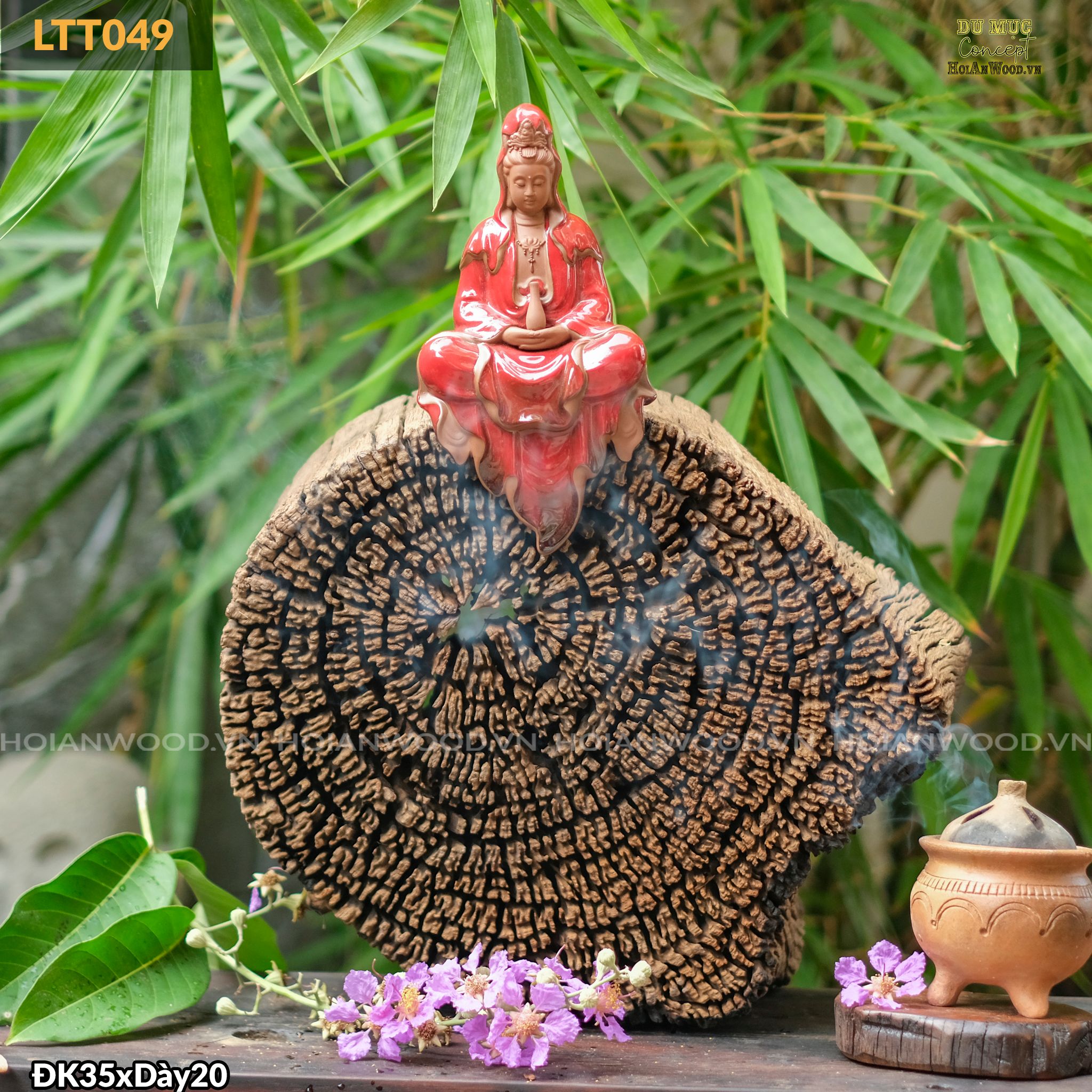 Kích thước: ĐK 35cm x 20cm (Sản phẩm gỗ tự nhiên nên các số đo chỉ mang tính chất tương đối)