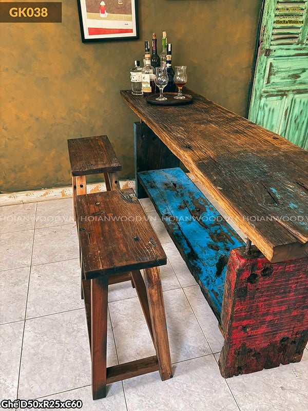 Kệ Console/quầy bar 2 tầng gỗ tàu thuyền
