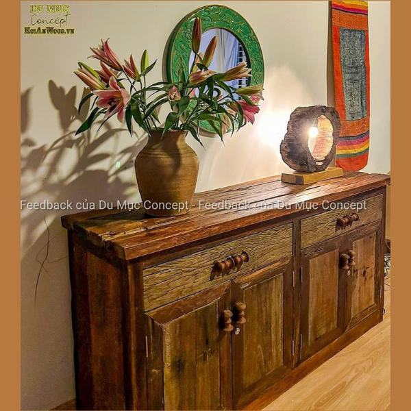 Tủ gỗ phong cách vintage làm từ gỗ lũa, gỗ cũ là mẫu tủ đặc trưng của Du Mục Concept.