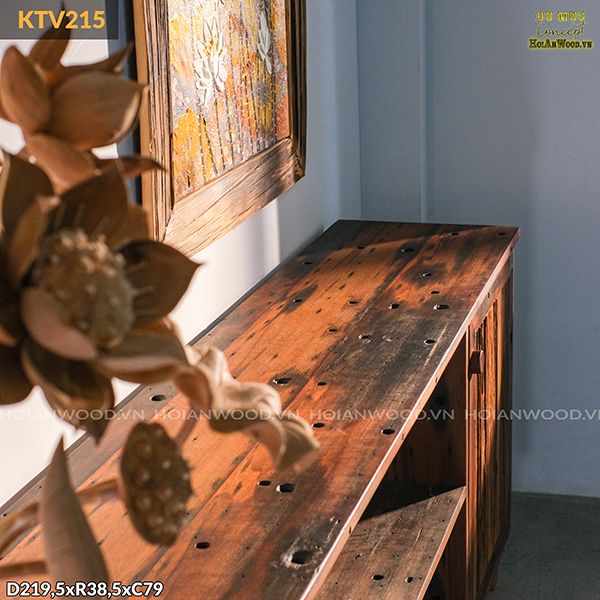 🌤️ Nhẹ nhàng một góc rustic trong gian nhà, sự kết hợp giữa gỗ tàu thuyền và lũa tự nhiên trong kiểu dáng tủ/kệ rất đỗi mượt mà.